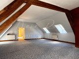 À l’étage : vaste pièce palière, bureau, dégagement, WC avec lavabo, une pièce traversante à aménager en chambre et une chambre avec balcon sur le jardin.